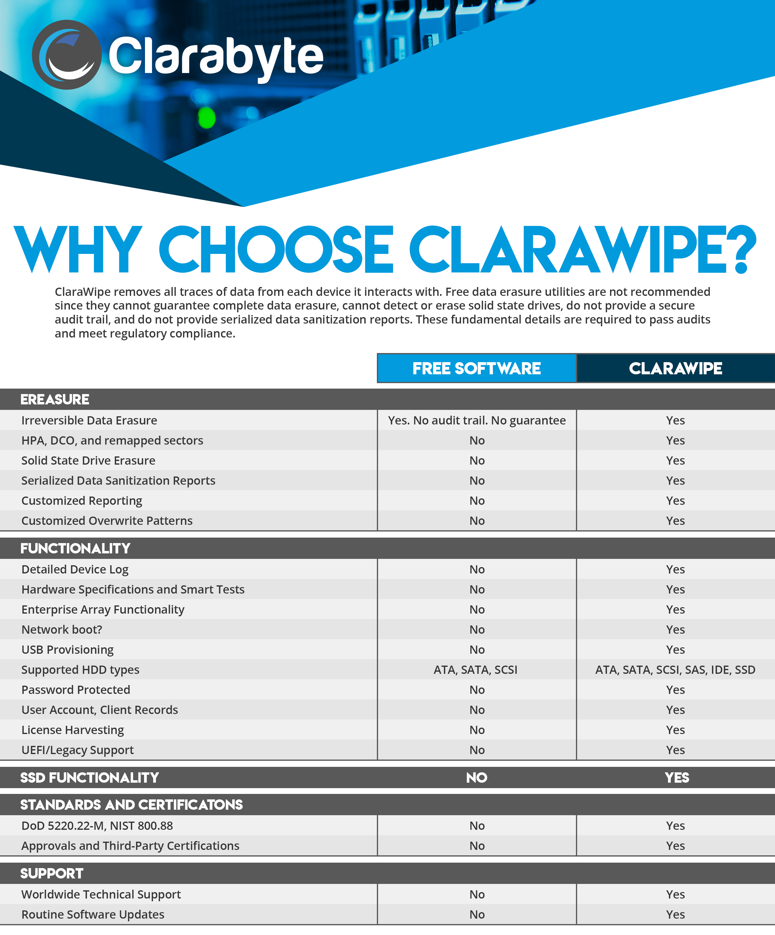- ClaraWipe is perfect for any situation in which you need to completely remove ALL data and programs on a drive.